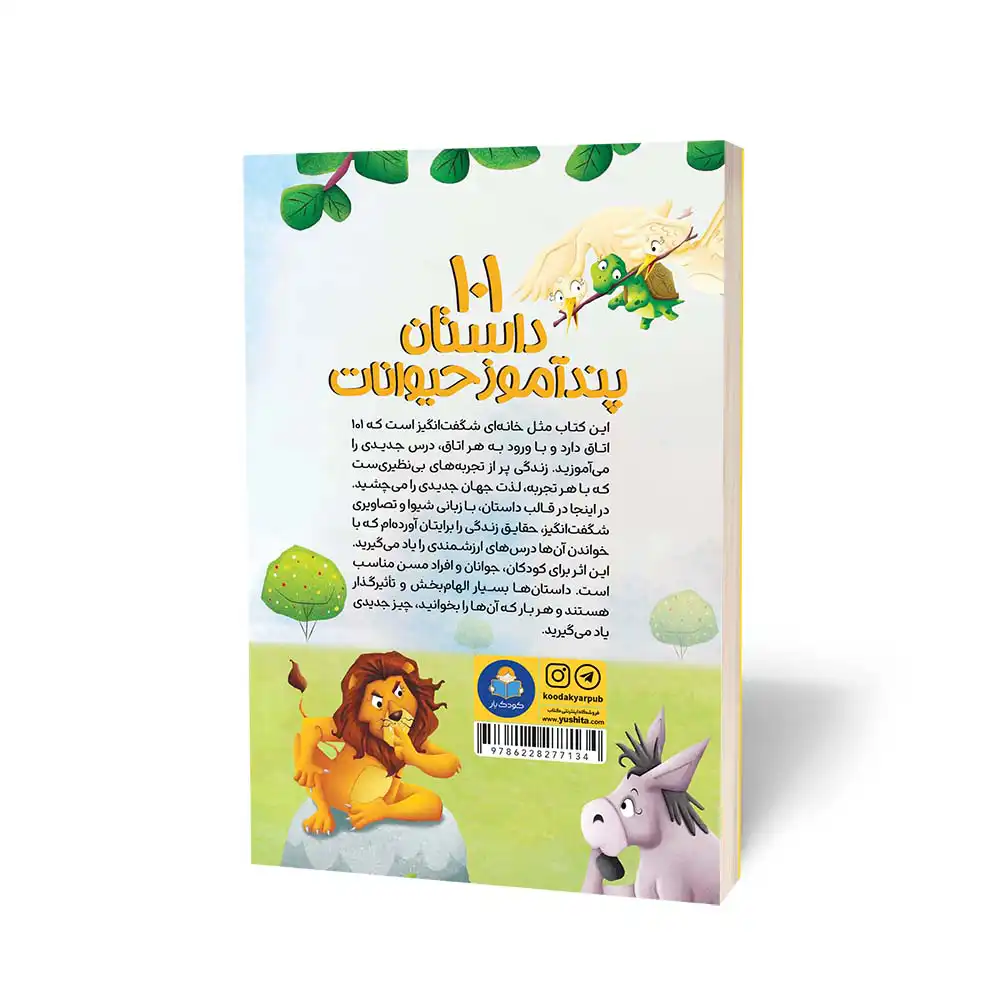 - کتاب 101 داستان پندآموز حیوانات اثر تیم اختصاصی نویسندگان و طراحان (Wonder House Books) : این کتاب مجموعهای جذاب از ۱۰۱ داستان کوتاه و آموزنده با محوریت حیوانات است که توسط تیم نویسندگان و طراحان انتشارات Wonder House گردآوری شده است. هر داستان با زبانی ساده و روان، مفاهیم اخلاقی و انسانی مانند صداقت، مهربانی، شجاعت، همکاری و احترام را از طریق ماجراهای حیوانات به کودکان منتقل میکند. تصاویر رنگی و دلنشین در کنار روایتهای کوتاه، تجربهای شیرین و آموزنده برای خوانندگان خردسال فراهم میآورد. این کتاب نهتنها سرگرمکننده است، بلکه ابزاری مؤثر برای آموزش ارزشهای اخلاقی در قالب داستانهایی جذاب و قابل فهم برای کودکان محسوب میشود. «۱۰۱ داستان پندآموز حیوانات» انتخابی عالی برای والدین و مربیانی است که به دنبال تقویت شخصیت و رشد فکری کودکان هستند.