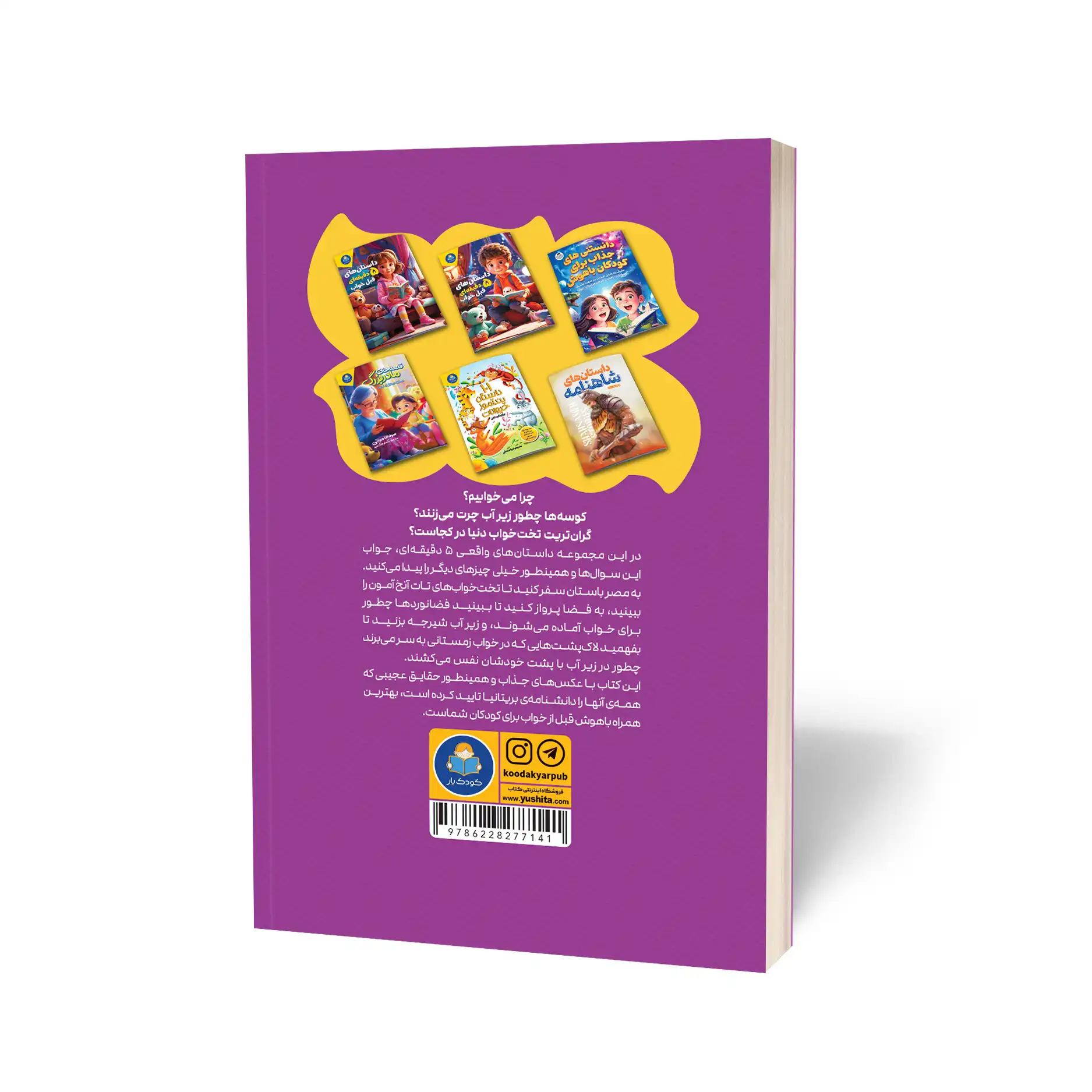 - کتاب داستان های شگفت انگیز 5 دقیقه ای قبل از خواب اثر سالی سایمز : کتاب «داستانهای شگفتانگیز ۵ دقیقهای قبل از خواب» اثر سالی سایمز مجموعهای دلنشین از قصههای کوتاه و خیالانگیز است که برای لحظات آرام قبل از خواب طراحی شدهاند. این داستانها با زبانی ساده و روان نوشته شدهاند تا هم برای کودکان جذاب باشند و هم برای والدینی که میخواهند در مدت کوتاهی فرزندشان را سرگرم کنند. هر قصه در حدود پنج دقیقه زمان میبرد و با شخصیتهای دوستداشتنی، ماجراهای شیرین و پیامهای مثبت همراه است. کتاب فضایی گرم و صمیمی ایجاد میکند و به کودکان کمک میکند با آرامش بیشتری به خواب بروند. ترکیب تخیل، طنز ملایم و آموزههای کوچک اخلاقی باعث میشود این مجموعه نه تنها سرگرمکننده، بلکه آموزنده نیز باشد. این کتاب انتخابی مناسب برای خانوادههایی است که به دنبال لحظات مشترک و خاطرهانگیز در پایان روز هستند و میخواهند تجربهای شیرین و آرامشبخش را به فرزندان خود هدیه دهند.