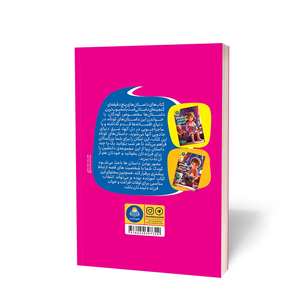 - کتاب داستان های 5 دقیقه ای قبل از خواب (دختران) اثر کاتج دور پرس : کتاب داستانهای ۵ دقیقهای قبل از خواب (دختران) اثر کاتج دور پرس، مجموعهای دلنشین از روایتهای کوتاه و آموزنده است که برای لحظات آرام پیش از خواب طراحی شدهاند. هر داستان با زبانی ساده و شیرین، دنیایی از تخیل، مهربانی و شجاعت را پیش روی دختران قرار میدهد و آنها را به رویاپردازی، یادگیری و رشد ترغیب میکند. تصاویر زیبا و روایتهای جذاب این کتاب، لحظات شب را به تجربهای گرم و دوستداشتنی تبدیل میکند. این مجموعه نهتنها سرگرمکننده است، بلکه ارزشهایی چون دوستی، اعتمادبهنفس و خلاقیت را نیز در دل خود جای داده است. داستانهای ۵ دقیقهای انتخابی عالی برای والدینیست که میخواهند شبهای فرزندانشان را با قصههایی الهامبخش و آرامبخش همراه کنند.