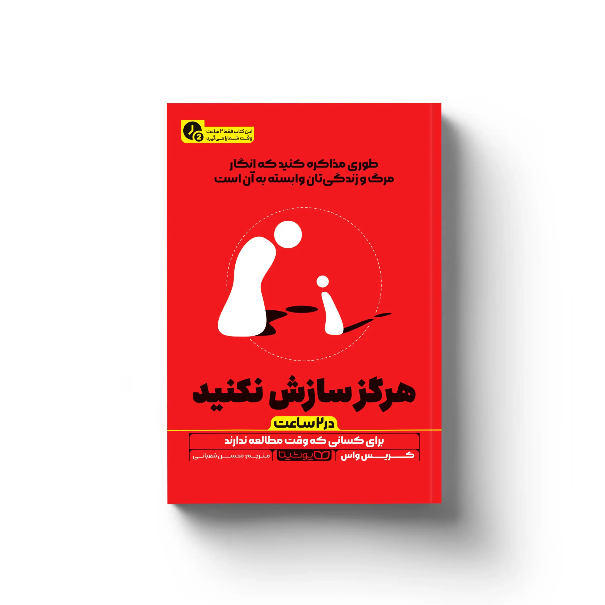- کتاب هرگز سازش نکنید (در 2 ساعت) اثر کریس واس : کریس واس، مذاکرهکننده سابق FBI، در این کتاب اصول مذاکره حرفهای را با مثالهای واقعی از موقعیتهای بحرانی آموزش میدهد. او نشان میدهد که مذاکره موفق نه با زور، بلکه با همدلی، گوش دادن فعال و طرح سوالات هوشمندانه حاصل میشود. «هرگز سازش نکنید» به خواننده یاد میدهد چگونه در مذاکرات روزمره، از خرید گرفته تا روابط کاری، با اعتمادبهنفس و هوشمندی به نتایج مطلوب برسد. این کتاب ترکیبی از روانشناسی، استراتژی و تجربه عملی است.