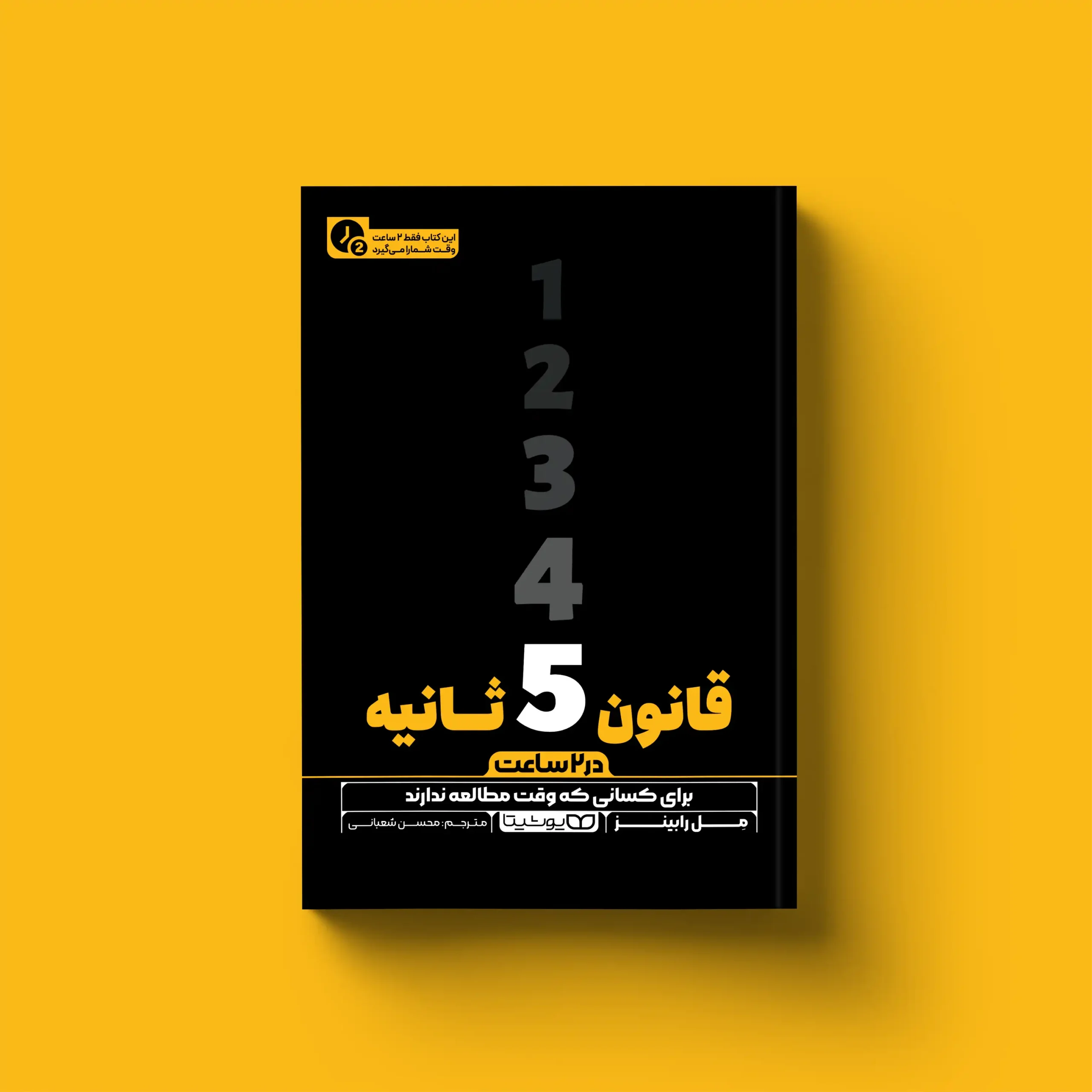 - کتاب کتاب قانون 5 ثانیه (در 2 ساعت) اثر مل رابینز : کتاب «قانون ۵ ثانیه» نوشتهی مل رابینز، راهنمایی کاربردی برای غلبه بر اهمالکاری، ترس و تردید است. این اثر با رویکردی ساده و عملی نشان میدهد که چگونه میتوان تنها با شمارش معکوس از ۵ تا ۱، ذهن را از حالت تعلل خارج کرد و به اقدام فوری رسید. رابینز معتقد است که لحظهای که غریزهای برای حرکت به سمت هدفی دارید، باید ظرف ۵ ثانیه عمل کنید، وگرنه ذهنتان مانع میشود. این قانون میتواند در بهبود بهرهوری، افزایش اعتمادبهنفس و ایجاد تغییرات مثبت در زندگی روزمره مؤثر باشد. کتابی الهامبخش برای کسانی که میخواهند از منطقه امن خود خارج شوند و زندگی را با شجاعت بیشتری تجربه کنند.